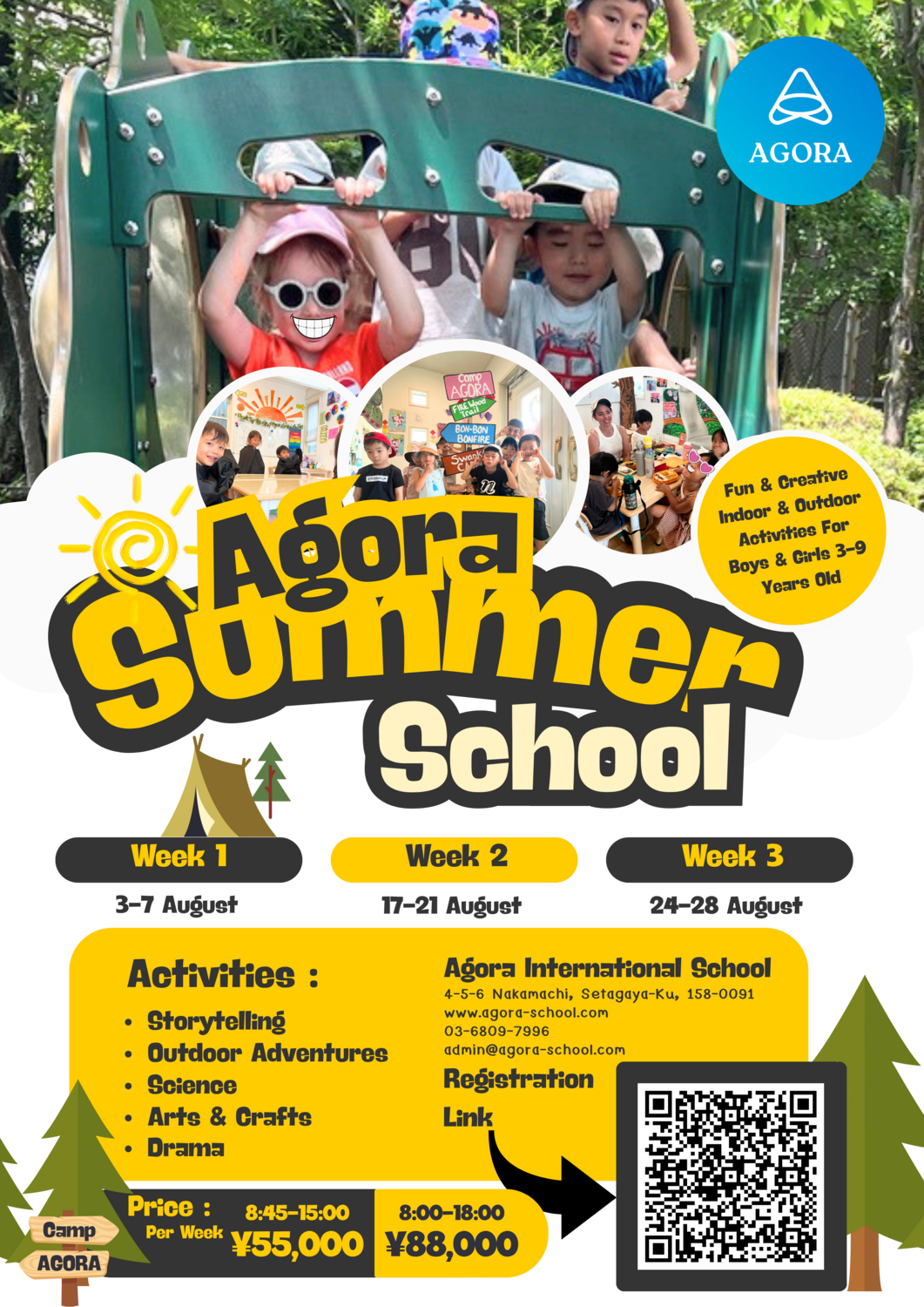 AGORA 2025 サマースクールは、アメリカの伝統的なサマーキャンプをイメージした、楽しさあふれるプログラムです!笑顔いっぱいの、ワクワクする毎日を一緒に過ごしましょう。